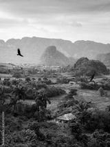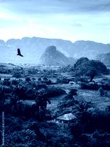 Beautiful Vinales Valley with palm trees and fog. Amazing green landscape of Cuba