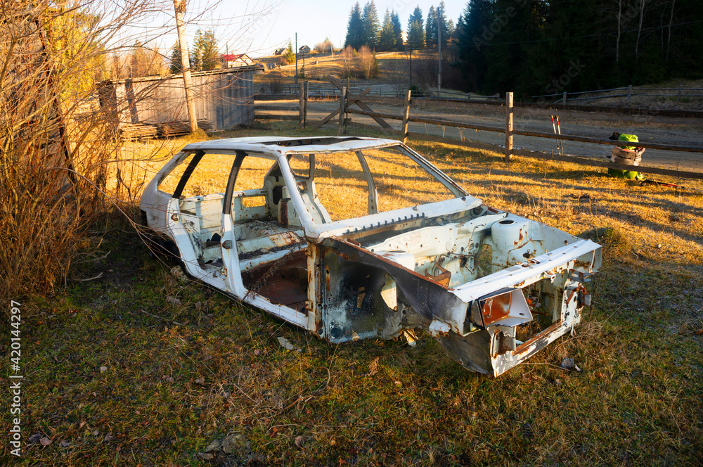 Disassembled abandoned car
