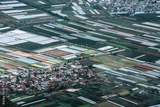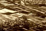 aerial view of agricultural plots of land under cultivation in an agricultural town.