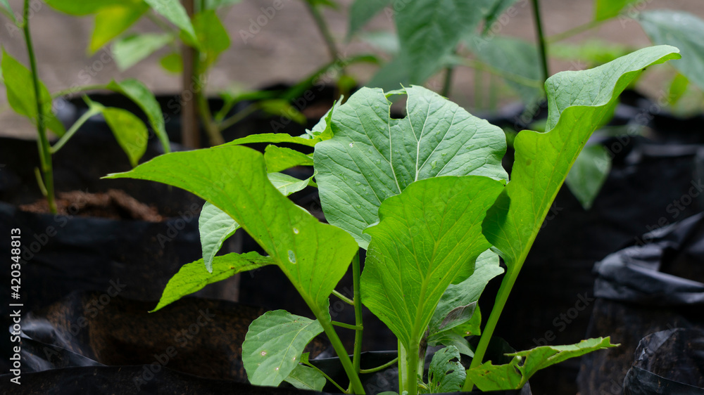 Mustard plants in polybags, one of the planting methods by utilizing a narrow area of land