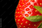 Macro view of fresh strawberry on a black background.