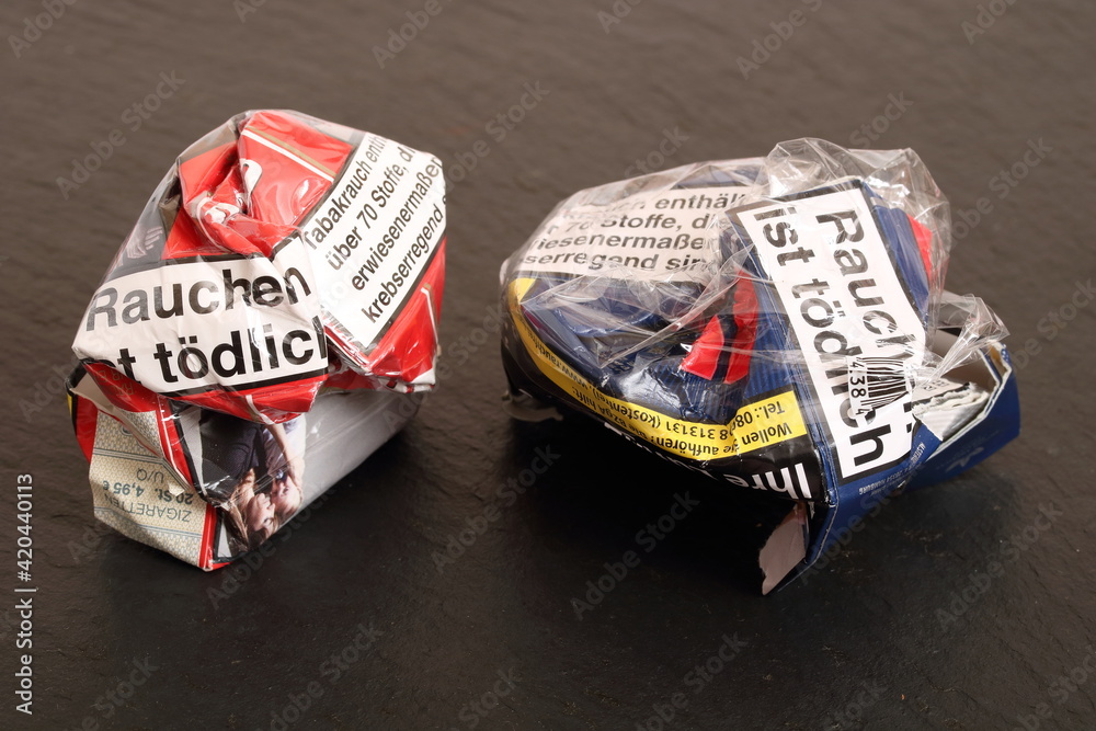 Zerknüllte Zigarettenschachtel: Stop Smoking!