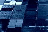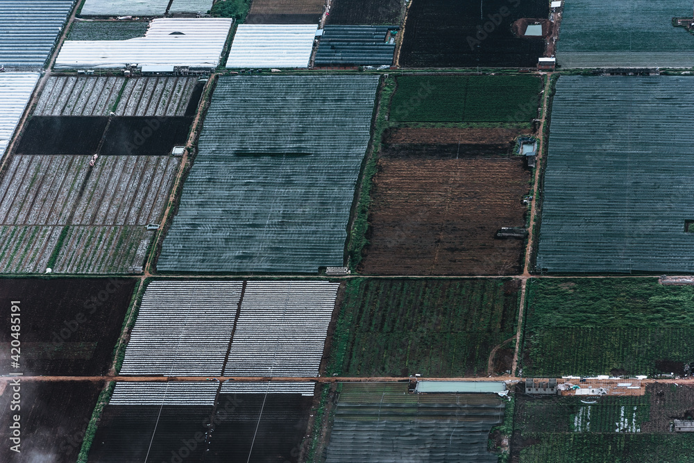 aerial view of agricultural plots of land under cultivation in an agricultural town.
