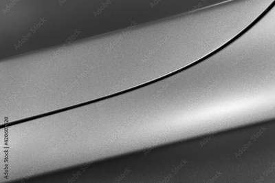Surface of gray sport sedan, car bodywork, detail of metal fender and hood of modern vehicle, automobile industry, selective focus