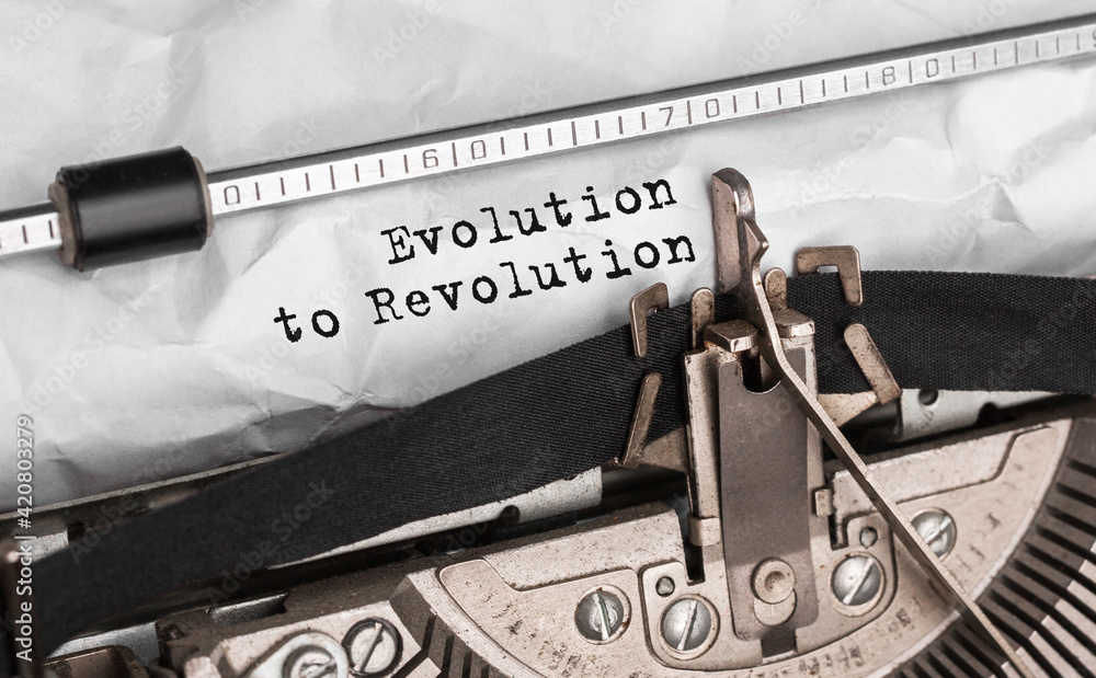 Text Evolution to Revolution typed on retro typewriter