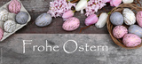 Osterkarte : Ostereier mit dem Text Frohe Ostern