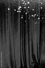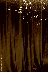 The red curtain made of luxurious velvet on the stage of the theater is fantastically glittering