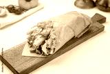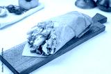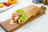 Gyros with chicken on the board on white concrete table Greek cuisine