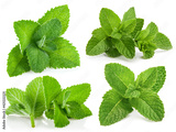 Collage mix set of Fresh green leaf mint. Isolated on white background.