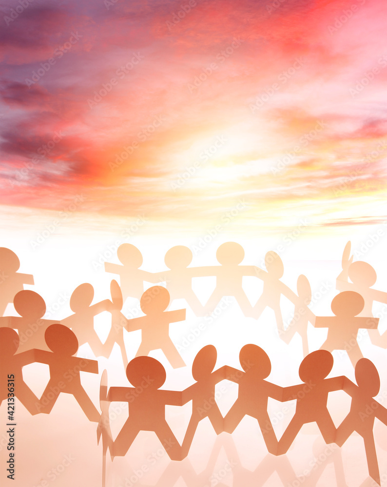 Paper chain team and sky