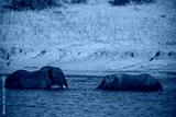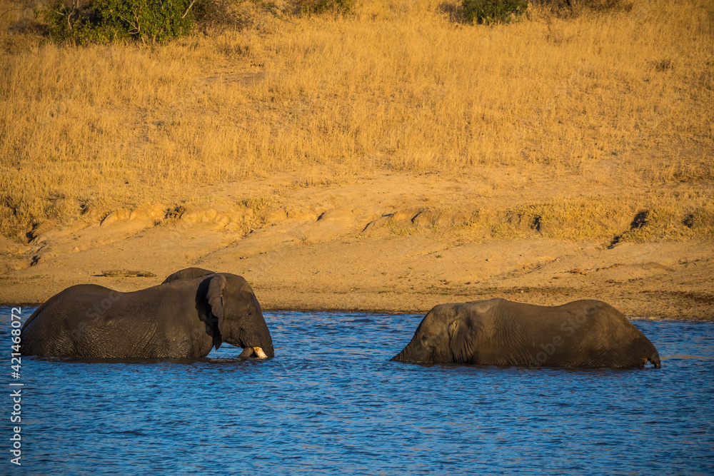 African Elephant Bulls, Loxodonta africana, in water in South Africa's Kruger National Park