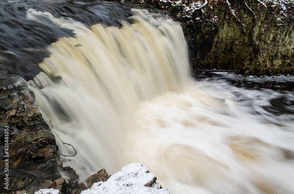 Long exposure waterfall on small river Ivande in Renda, Latvia