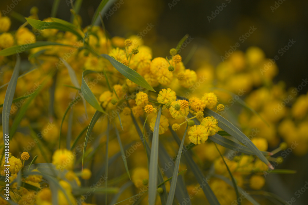 Flora of Gran Canaria - Acacia saligna, golden wreath wattle, introduced and invasive species, natural macro floral background