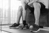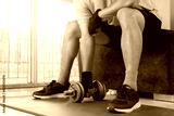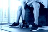 Sport man prepare doing dumbbell biceps curl exercise workout in home.