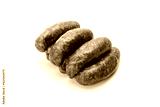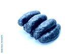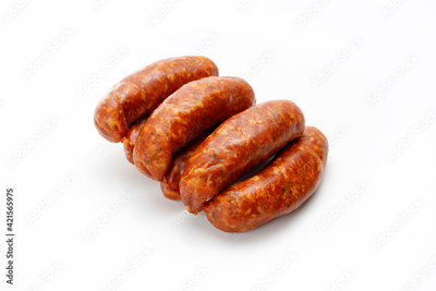 Rings of raw, smoked, medium minced sausage in natural casings, isolated on a white background. Traditional meat product , a packshot photo for package design, template. Polish sausage.