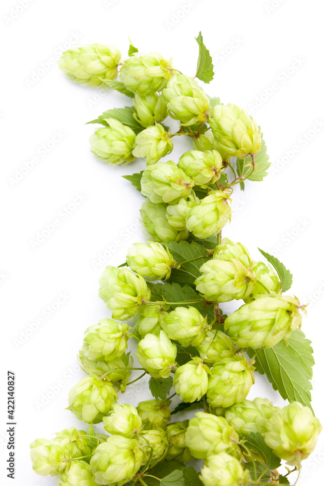 Hopfenranke vor weissem Hintergrund