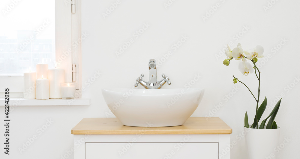 Wash sink area of beauty salon with candles and orchid