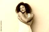 Young african american woman isolated on beige background hugs, smiling carefree and happy.