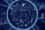 A pile of blueberries in the bucket