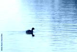 cute small water bird Little Grebe, Tachybaptus ruficollis, swimming on a river hunting for food.