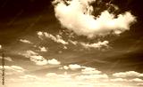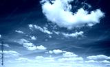 Azure sky background with white fluffy clouds in the fresh sunny day.