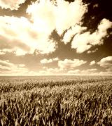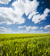 Fantastic green field with white fluffy clouds. Location place Ukraine, Europe.