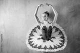 Portrait of a young ballerina in white tutu posing