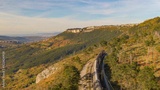 COPY SPACE: Freight train transporting cargo across the fall colored countryside
