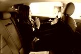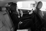 Busy professional woman doing a video call during a car ride