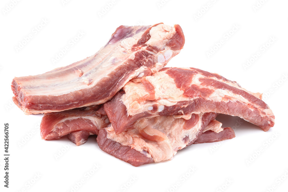 Raw pork ribs are isolated on a white background.