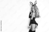 Sexy Easter bunny girl. Sexy blonde model dressed in Easter bunny costume and bunny ears isolated on white background. Halloween and Easter bunny costume - Image. Hot girl.