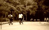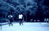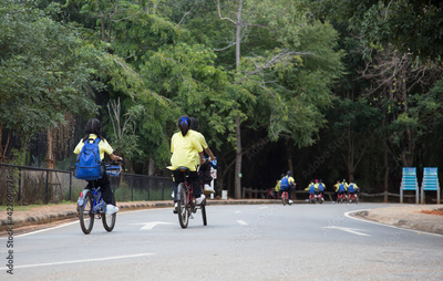 school kids bike touring parking to learn about nature