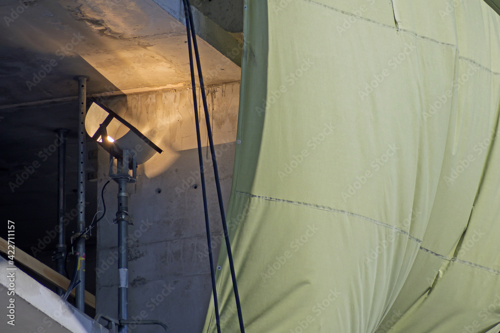 The lantern illuminates the place of work in the apartment of a residential building under construction