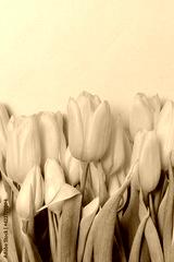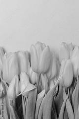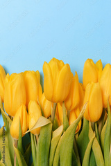 tulips with yellow petals on a blue background, a bouquet of flowers