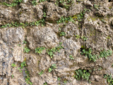 Old stone wall with plants nature background