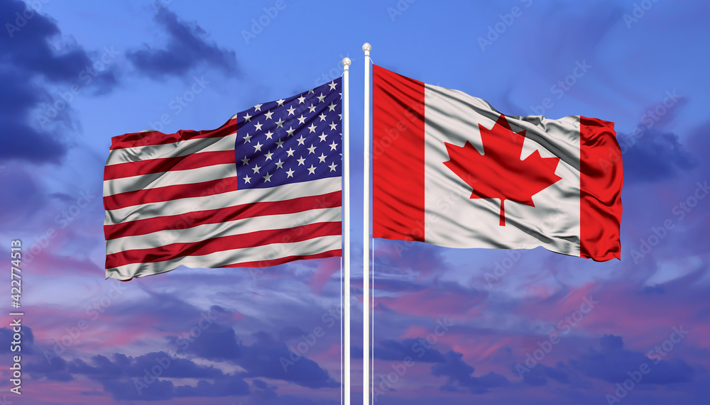 The Flag of the United States of America and the National Flag of Canada.