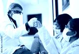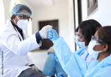 Closeup shot of Indian doctors with medical uniform and mask leaning on the white wall