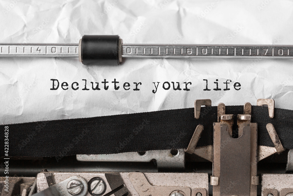 Text Declutter your life typed on retro typewriter