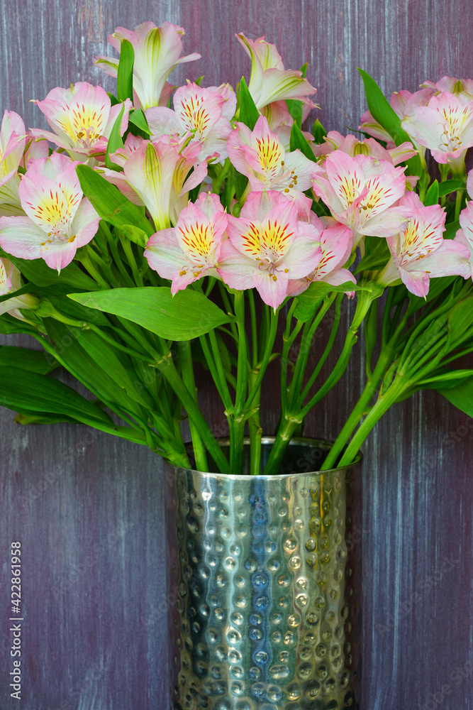 A bunch of white and pink Alstroemeria Lily of the Incas flowers