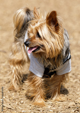 Yorkshire Terrier (AKA Yorkie) Standing and Looking Away. Off-leash dog park in Northern California.
