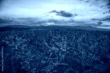 Orchard of peach trees bloomed in spring.Aerial shot with drone