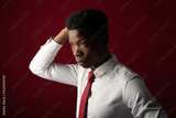 portrait of handsome young african man wearing white shirt