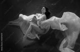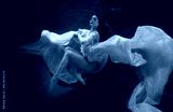 Vision. Sensual ballet dancer underwater, weightlessness and freedom. Blurred focus