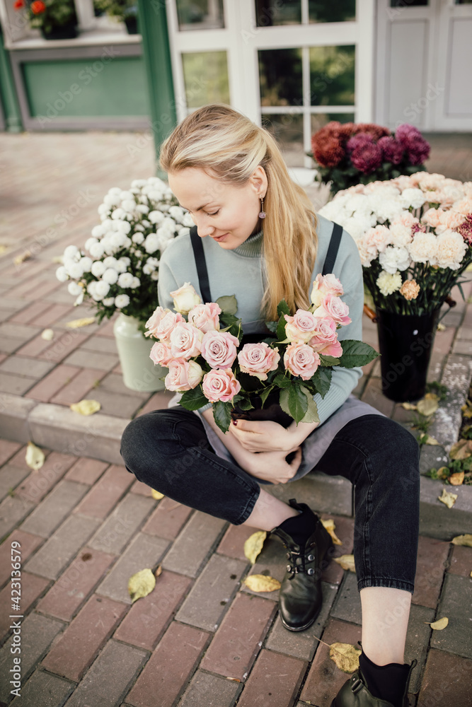 Floristry concept. bouquet of beautiful flowers. Spring colors. the work of the florist at a flower shop