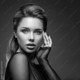 Beautiful face of young woman with healthy skin. Pretty model caring of face. Skin care concept..