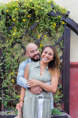 Pareja vacacionando en mexico con pueblo magico de fondo