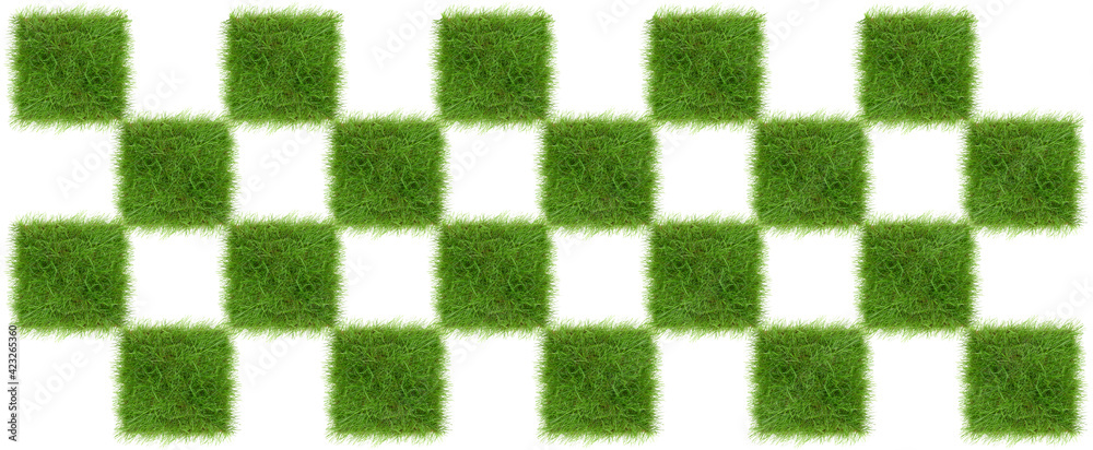 Grüne Schachbrett Wiese - Gras Quadrat Hintergrund Panorama freigestellt auf weiß
