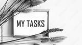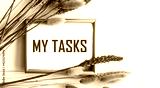 The text My tasks on a gold frame and a white background framed by colored ears of wheat
