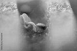 Germination of seeds and microgreens in a foam sponge. Green sprouts sprout from the seeds, close-up, selective focus. Concept:crop production at home.