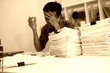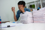 The young man was busy and stressed from hard work.